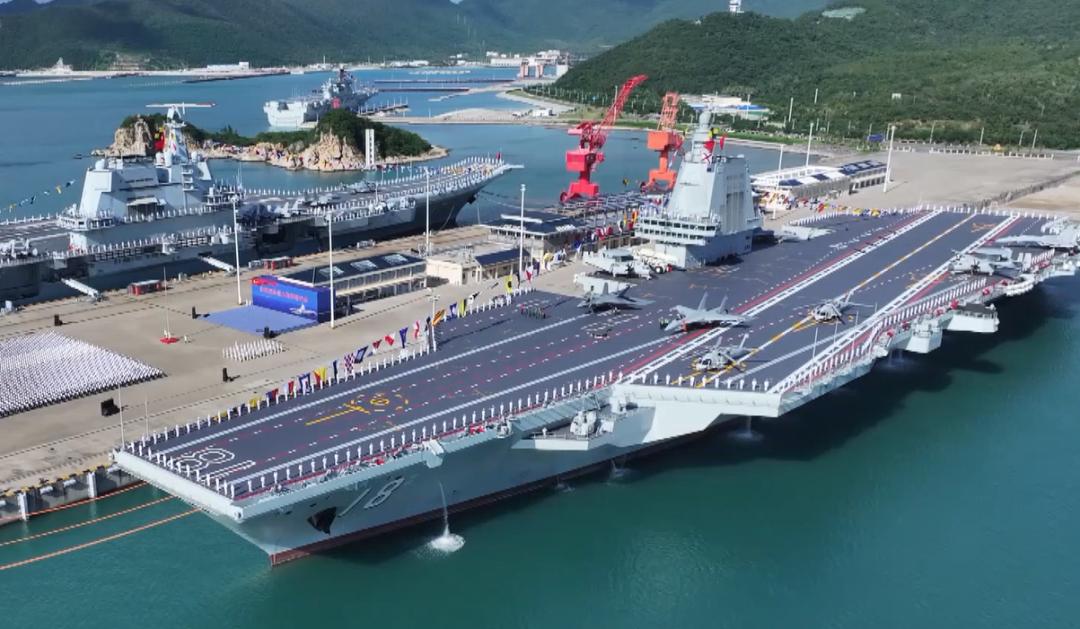 福建舰是我国完全自主设计建造的首艘电磁弹射型航空母舰,电磁弹射技术处于世界先进水平,采用平直通长飞行甲板,配置电磁弹射和阻拦装置,舰载机出动效率更高,大幅提升了海军近海防御和远海护卫作战能力。